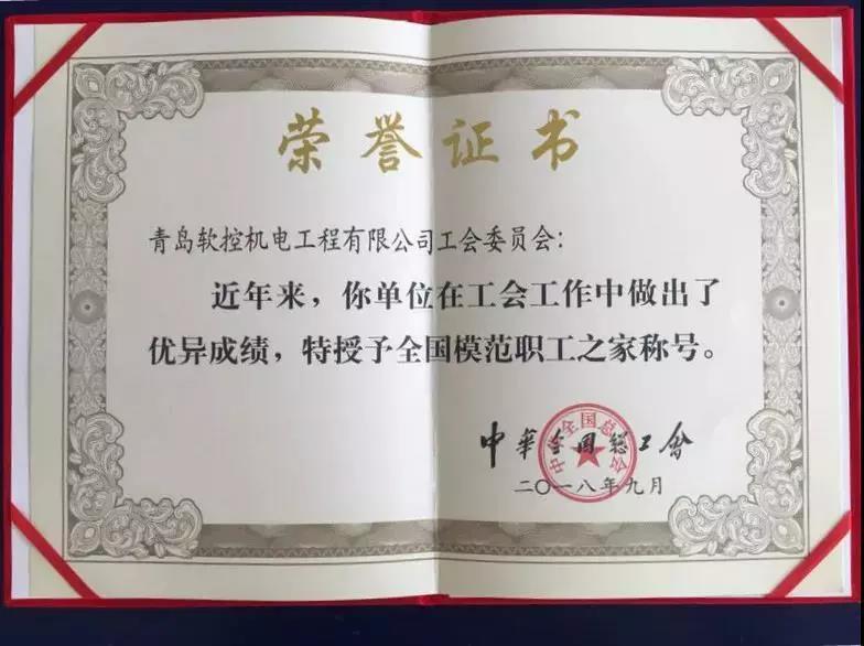 近日,中華全國總工會下發了《關于表彰“全國模范職工之家”的決定》,軟控機電工會榮獲“全國模范職工之家”榮譽。